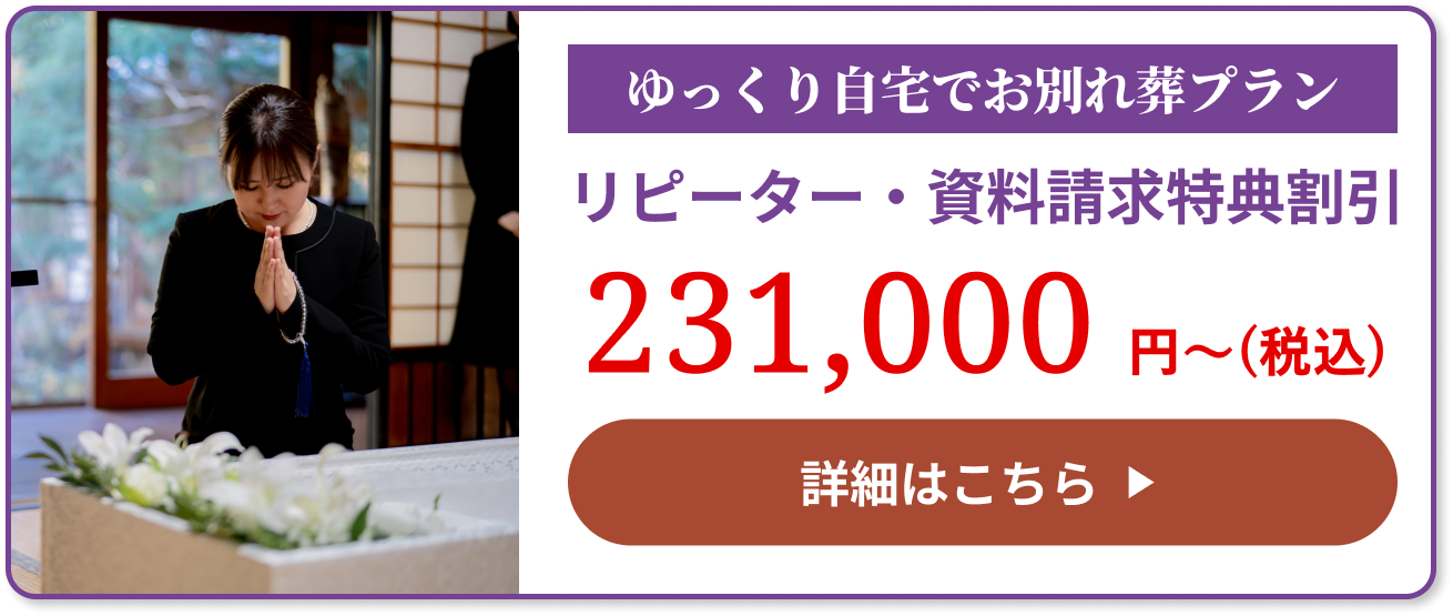 | 通夜/葬儀 (家族葬) | 18万~ | ・ 読経(葬儀) ・火葬炉前での読経 ・戒名 ・初七日 |