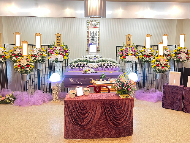落ち着いた雰囲気の中で、故人様を偲ぶ時間を大切にした葬儀を執り行うことができます。