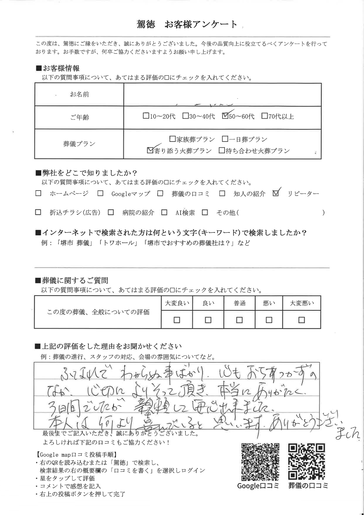 葬儀事例 項目詳細お住まいの地域堺市堺区葬儀プラン寄り添う火葬プラン葬儀プラン... -
