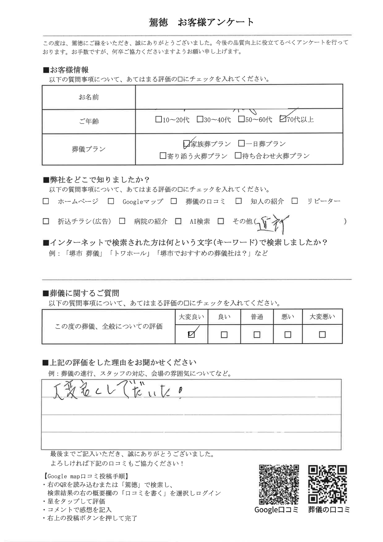 | お住まいの地域 | 堺市堺区香ヶ丘町 |