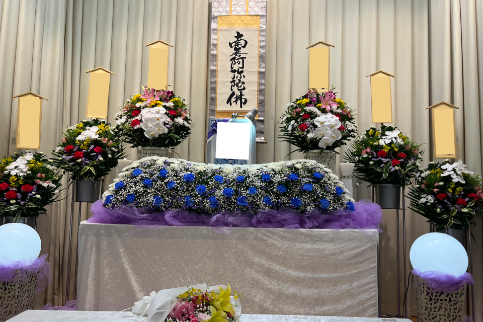 | 葬儀プラン費用 | プラン料金:363,000円 供花:33,000円 湯灌の儀:88,000円 火葬料金:10,000円 計:494,000円 |